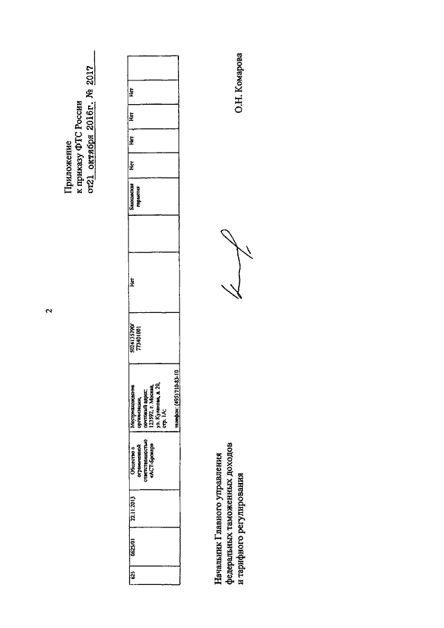 ПРИКАЗ ФТС РФ от 21.10.2016 N 2017