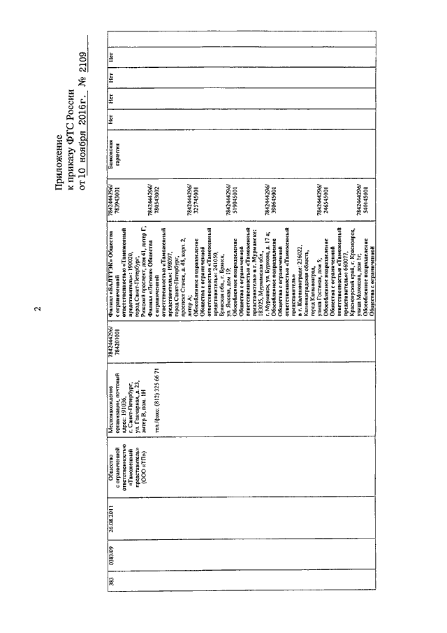 ПРИКАЗ ФТС РФ от 10.11.2016 N 2109