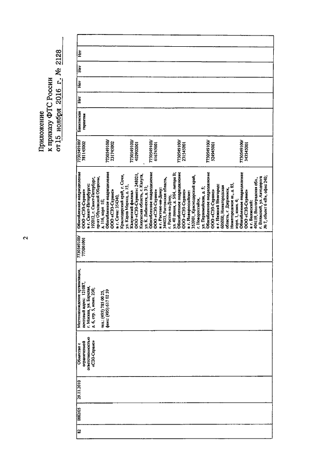 ПРИКАЗ ФТС РФ от 15.11.2016 N 2128
