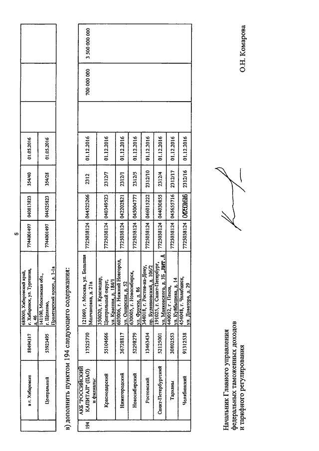 "О ВНЕСЕНИИ ИЗМЕНЕНИЙ В РЕЕСТР БАНКОВ, ИНЫХ КРЕДИТНЫХ ОРГАНИЗАЦИЙ, ОБЛАДАЮЩИХ ПРАВОМ ВЫДАЧИ БАНКОВСКИХ ГАРАНТИЙ УПЛАТЫ ТАМОЖЕННЫХ ПОШЛИН, НАЛОГОВ, УТВЕРЖДЕННЫЙ ПРИКАЗОМ ФТС РОССИИ ОТ 28 ИЮНЯ 2016 Г. N 1270"