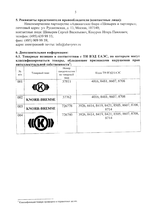 "О ТОВАРНЫХ ЗНАКАХ КОМПАНИИ "KNORR-BREMSE AG"