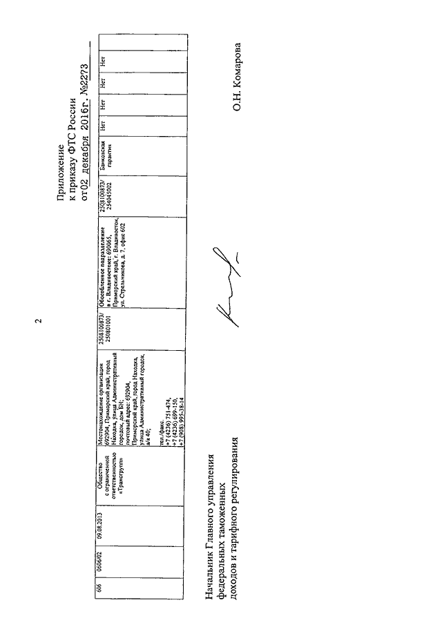 ПРИКАЗ ФТС РФ от 02.12.2016 N 2273