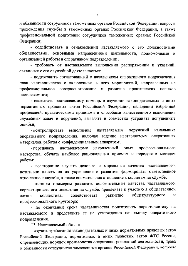 "ОБ УТВЕРЖДЕНИИ ИНСТРУКЦИИ О НАСТАВНИЧЕСТВЕ В ОПЕРАТИВНЫХ ПОДРАЗДЕЛЕНИЯХ ТАМОЖЕННЫХ ОРГАНОВ РОССИЙСКОЙ ФЕДЕРАЦИИ"