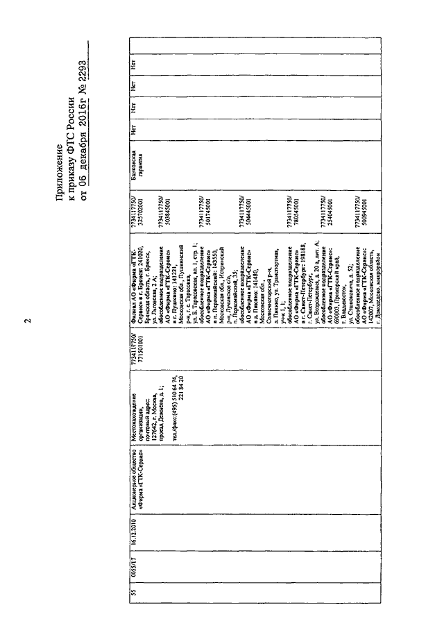 ПРИКАЗ ФТС РФ от 06.12.2016 N 2293