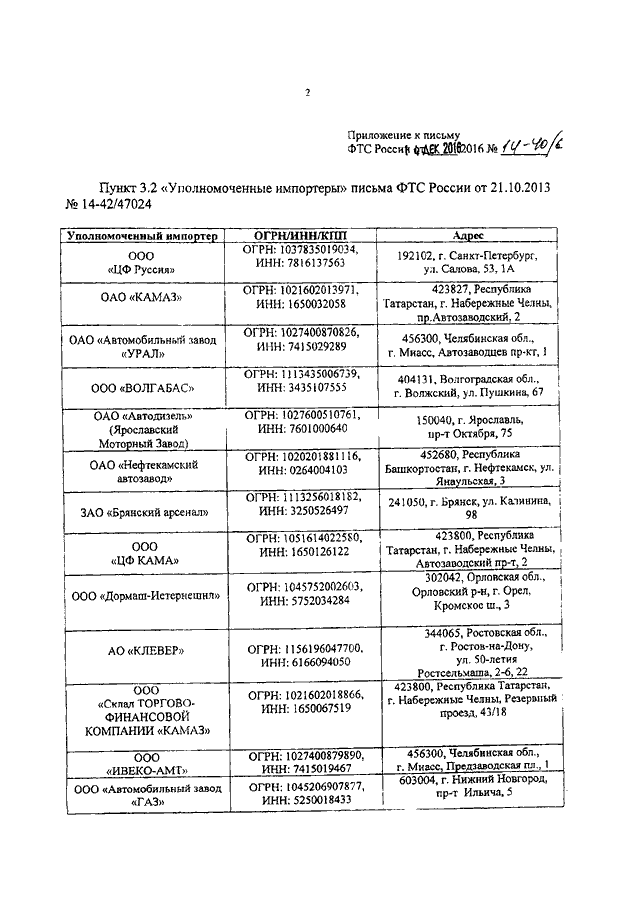 "О ВНЕСЕНИИ ИЗМЕНЕНИЙ В ПИСЬМО ФТС РОССИИ ОТ 21.10.2013 N 14-42/47024"