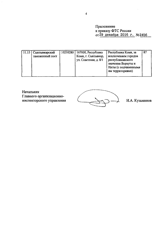 ПРИКАЗ ФТС РФ от 29.12.2016 N 2456 "О ЛИКВИДАЦИИ ЖЕШАРТСКОГО, УХТИНСКОГО, ЭЖВИНСКОГО ТАМОЖЕННЫХ