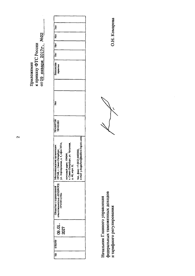 ПРИКАЗ ФТС РФ от 09.01.2017 N 22