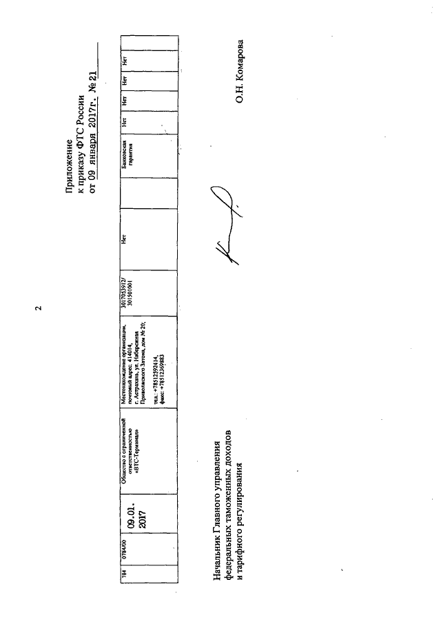 ПРИКАЗ ФТС РФ от 09.01.2017 N 21