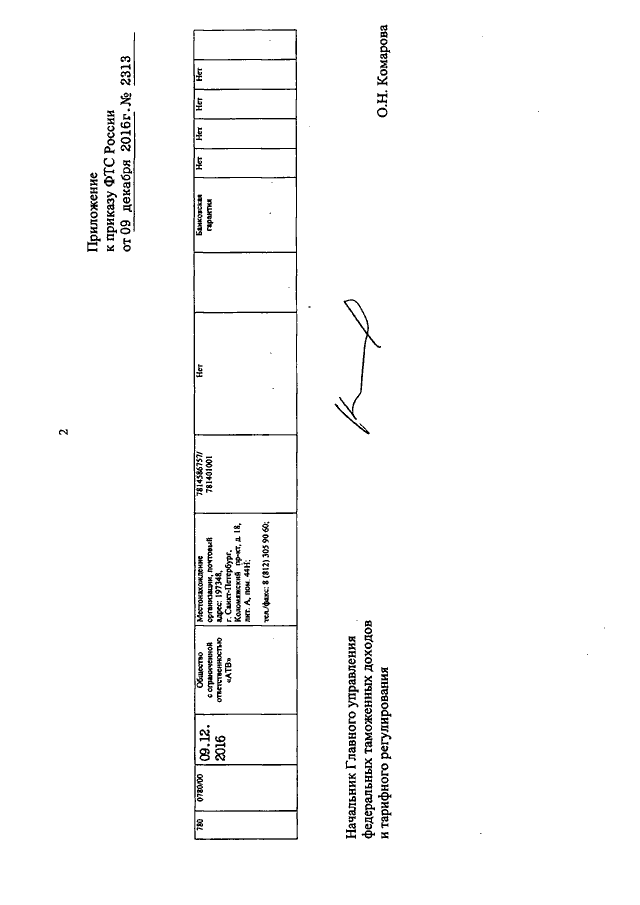 ПРИКАЗ ФТС РФ от 09.12.2016 N 2313