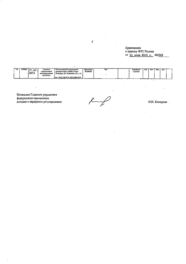 ПРИКАЗ ФТС РФ от 31.07.2015 N 1545