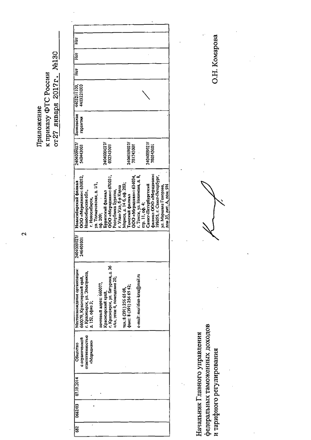 "О ВНЕСЕНИИ ИЗМЕНЕНИЙ В РЕЕСТР ТАМОЖЕННЫХ ПРЕДСТАВИТЕЛЕЙ В ОТНОШЕНИИ ОБЩЕСТВА С ОГРАНИЧЕННОЙ ОТВЕТСТВЕННОСТЬЮ "МЕРИДИАН"