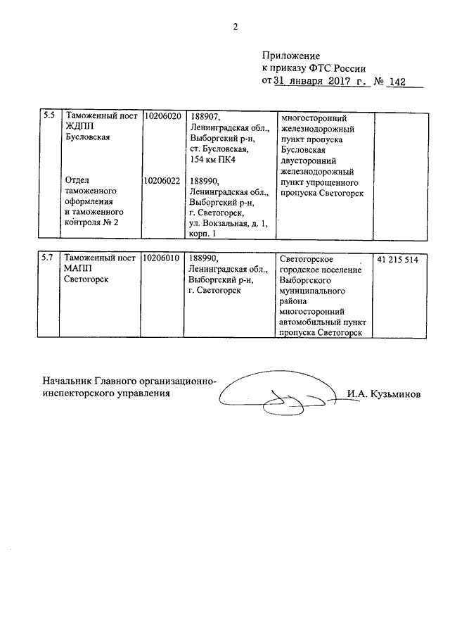 ПРИКАЗ ФТС РФ от 31.01.2017 N 142 "О ПРИСВОЕНИИ КОДА И ОПРЕДЕЛЕНИИ МЕСТОНАХОЖДЕНИЯ ОТДЕЛА