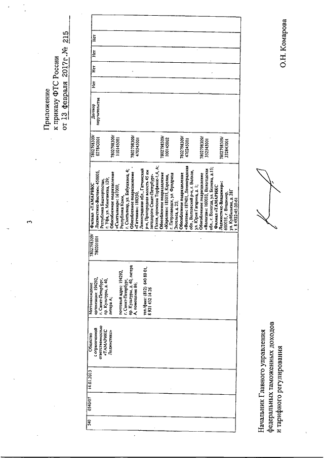 "О ВНЕСЕНИИ ИЗМЕНЕНИЙ В РЕЕСТР ТАМОЖЕННЫХ ПРЕДСТАВИТЕЛЕЙ В ОТНОШЕНИИ ОБЩЕСТВА С ОГРАНИЧЕННОЙ ОТВЕТСТВЕННОСТЬЮ "ТАМАРИКС ЛОДЖИСТИКС"