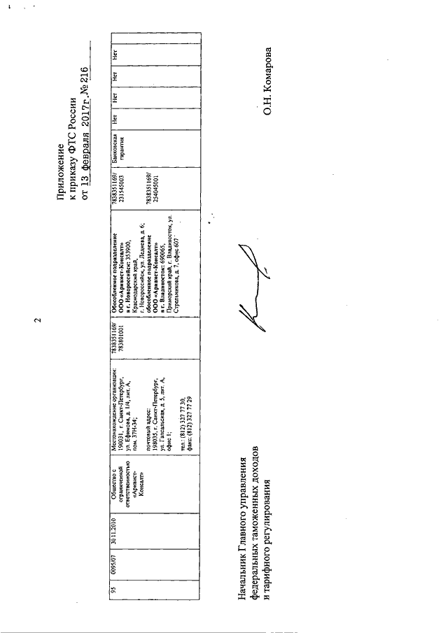 ПРИКАЗ ФТС РФ от 13.02.2017 N 216