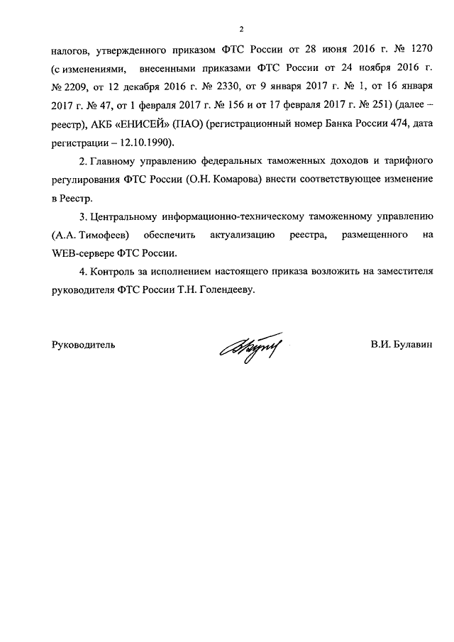 "ОБ ИСКЛЮЧЕНИИ ИЗ РЕЕСТРА БАНКОВ, ИНЫХ КРЕДИТНЫХ ОРГАНИЗАЦИЙ, ОБЛАДАЮЩИХ ПРАВОМ ВЫДАЧИ БАНКОВСКИХ ГАРАНТИЙ УПЛАТЫ ТАМОЖЕННЫХ ПОШЛИН, НАЛОГОВ, АКБ "ЕНИСЕЙ" (ПАО)"