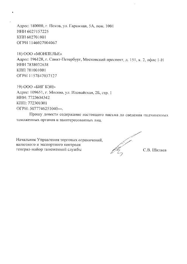 "О ВНЕСЕНИИ ИЗМЕНЕНИЙ В ПИСЬМО ФТС РОССИИ ОТ 21.09.2016 N 14-40/47749"