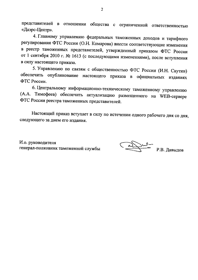 "ОБ ИСКЛЮЧЕНИИ ИЗ РЕЕСТРА ТАМОЖЕННЫХ ПРЕДСТАВИТЕЛЕЙ ОБЩЕСТВА С ОГРАНИЧЕННОЙ ОТВЕТСТВЕННОСТЬЮ "ДАЭРС-ЦЕНТР"