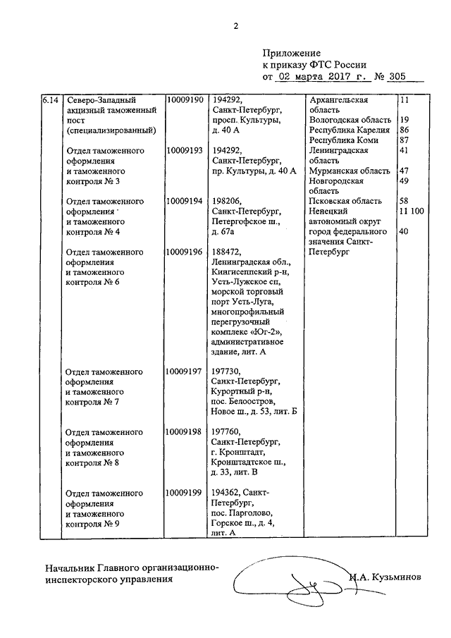 ПРИКАЗ ФТС РФ от 02.03.2017 N 305