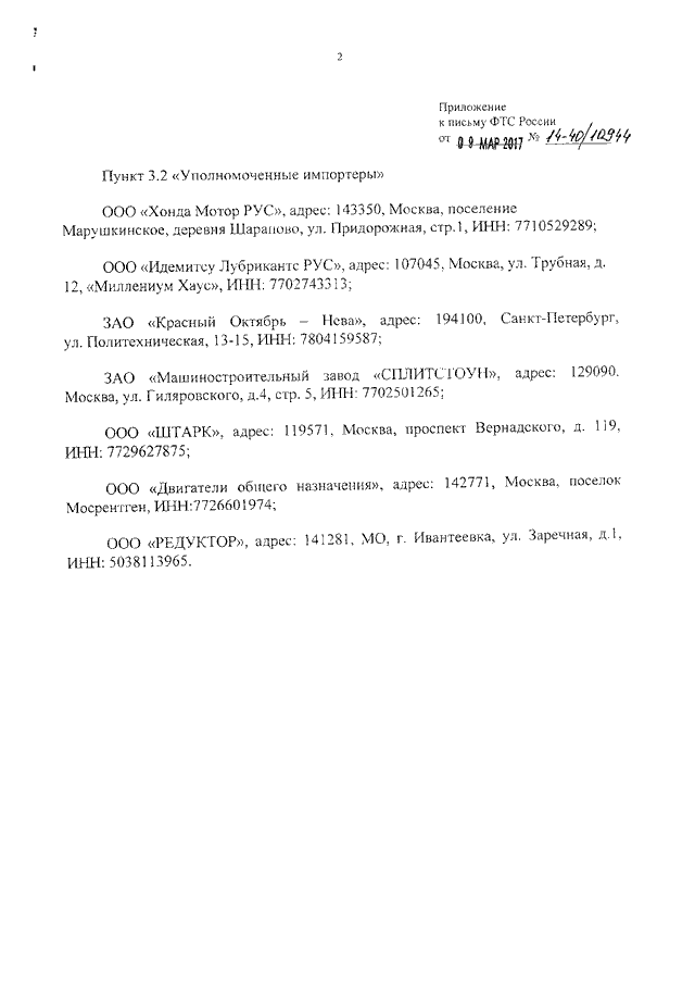 ПИСЬМО ФТС РФ от 09.03.2017 N 14-40/10944