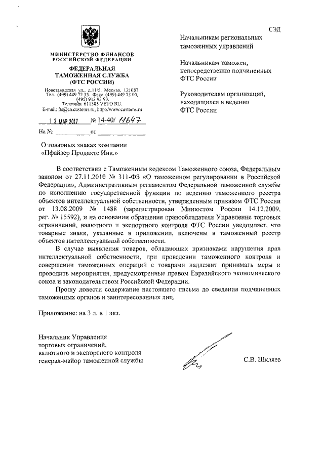 ПИСЬМО ФТС РФ от 13.03.2017 N 14-40/11647