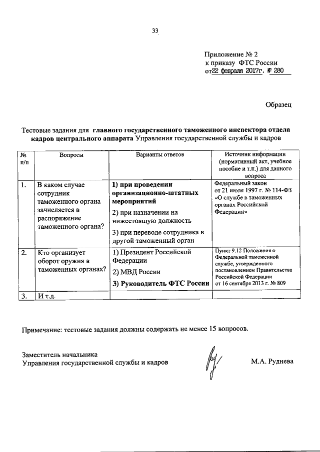 ПРИКАЗ ФТС РФ от 22.02.2017 N 280
