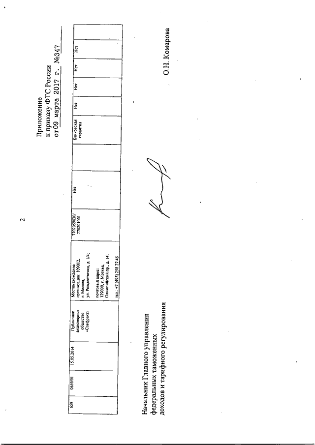 ПРИКАЗ ФТС РФ от 09.03.2017 N 347