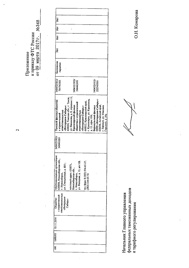 "О ВНЕСЕНИИ ИЗМЕНЕНИЙ В РЕЕСТР ТАМОЖЕННЫХ ПРЕДСТАВИТЕЛЕЙ В ОТНОШЕНИИ ОБЩЕСТВА С ОГРАНИЧЕННОЙ ОТВЕТСТВЕННОСТЬЮ "ИНТЕРАЦИЯ - СИБИРЬ"