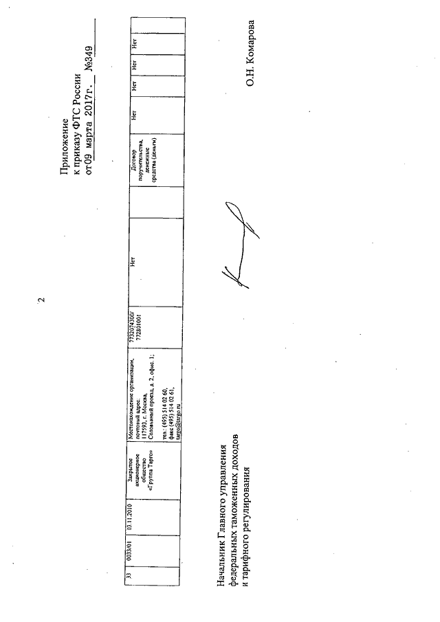 ПРИКАЗ ФТС РФ от 09.03.2017 N 349