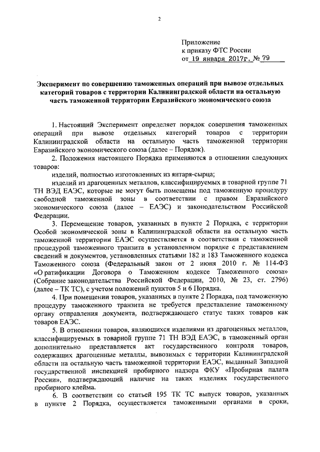 ПРИКАЗ ФТС РФ от 19.01.2017 N 79