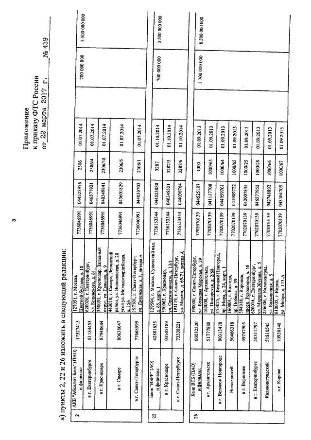 ПРИКАЗ ФТС РФ от 22.03.2017 N 439