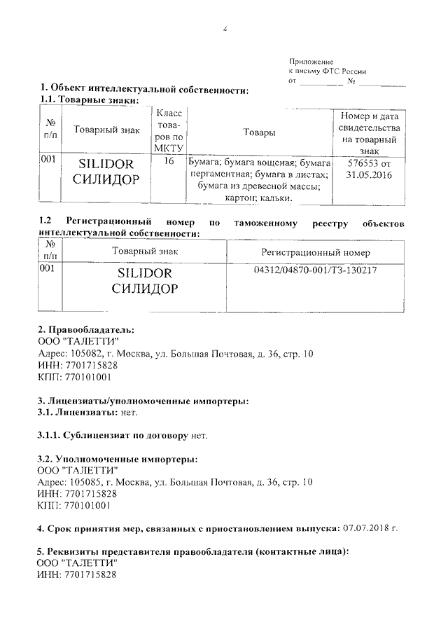 "О ТОВАРНОМ ЗНАКЕ ООО "ТАЛЕТТИ"