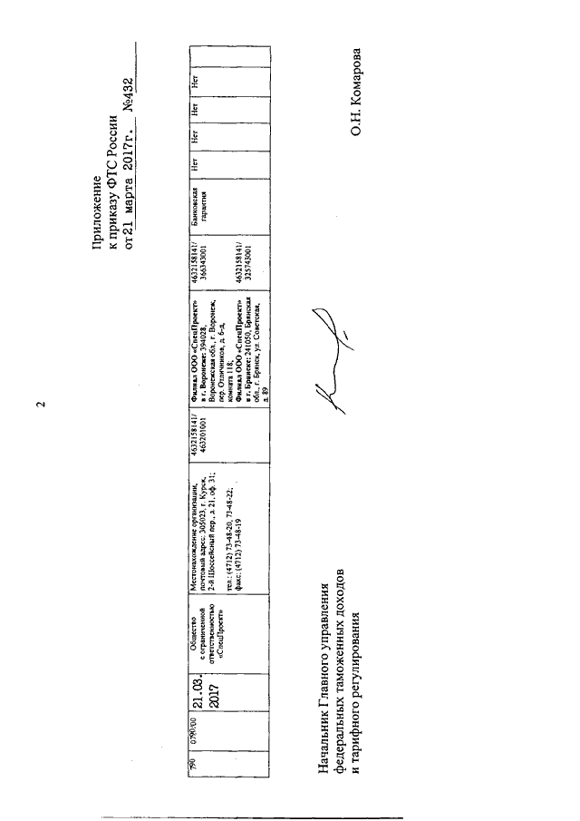 ПРИКАЗ ФТС РФ от 21.03.2017 N 432