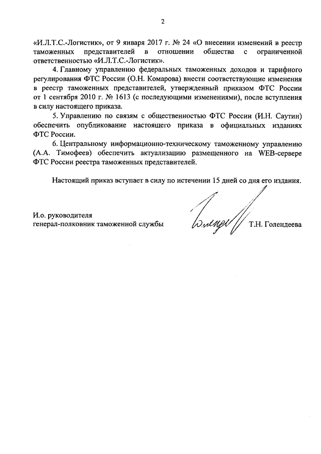"ОБ ИСКЛЮЧЕНИИ ИЗ РЕЕСТРА ТАМОЖЕННЫХ ПРЕДСТАВИТЕЛЕЙ ОБЩЕСТВА С ОГРАНИЧЕННОЙ ОТВЕТСТВЕННОСТЬЮ "И.Л.Т.С.-ЛОГИСТИК"