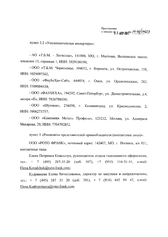 ПИСЬМО ФТС РФ от 07.04.2017 N 14-40/17523