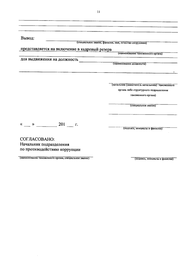 "ОБ УТВЕРЖДЕНИИ ИНСТРУКЦИИ ОБ ОРГАНИЗАЦИИ РАБОТЫ ПО ФОРМИРОВАНИЮ КАДРОВОГО РЕЗЕРВА ДЛЯ ВЫДВИЖЕНИЯ НА ВЫШЕСТОЯЩИЕ РУКОВОДЯЩИЕ ДОЛЖНОСТИ В ТАМОЖЕННЫХ ОРГАНАХ РОССИЙСКОЙ ФЕДЕРАЦИИ"