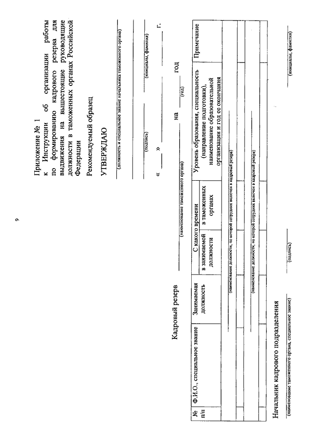 "ОБ УТВЕРЖДЕНИИ ИНСТРУКЦИИ ОБ ОРГАНИЗАЦИИ РАБОТЫ ПО ФОРМИРОВАНИЮ КАДРОВОГО РЕЗЕРВА ДЛЯ ВЫДВИЖЕНИЯ НА ВЫШЕСТОЯЩИЕ РУКОВОДЯЩИЕ ДОЛЖНОСТИ В ТАМОЖЕННЫХ ОРГАНАХ РОССИЙСКОЙ ФЕДЕРАЦИИ"