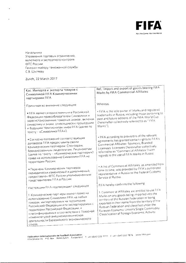 ПИСЬМО ФТС РФ от 07.04.2017 N 14-40/17541
