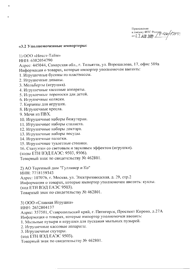 ПИСЬМО ФТС РФ от 07.04.2017 N 14-40/17558