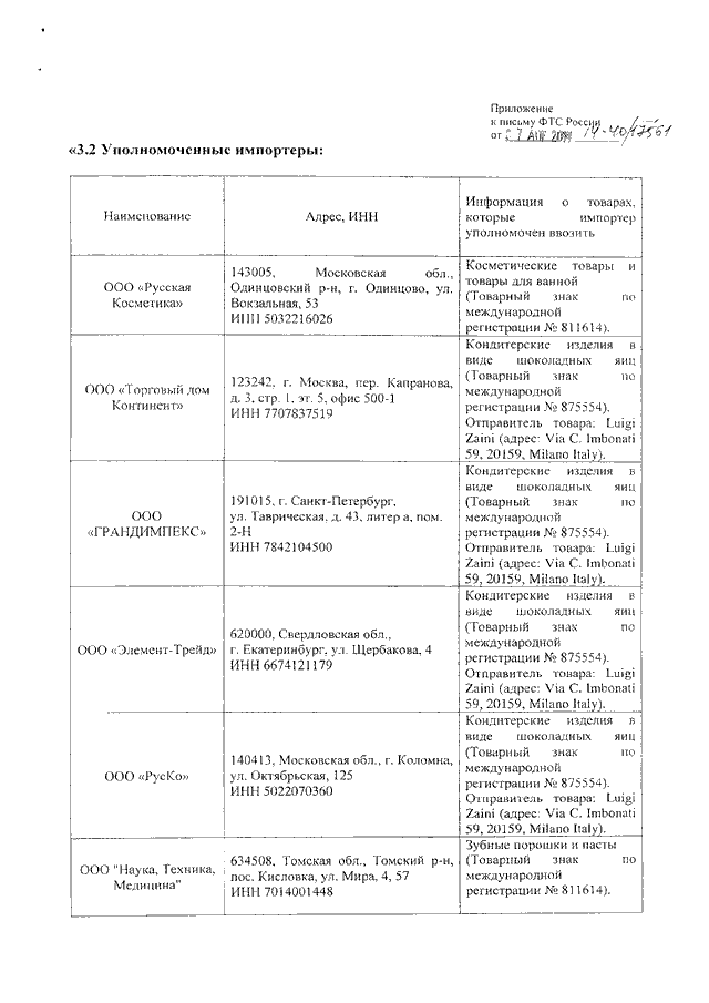 ПИСЬМО ФТС РФ от 07.04.2017 N 14-40/17561