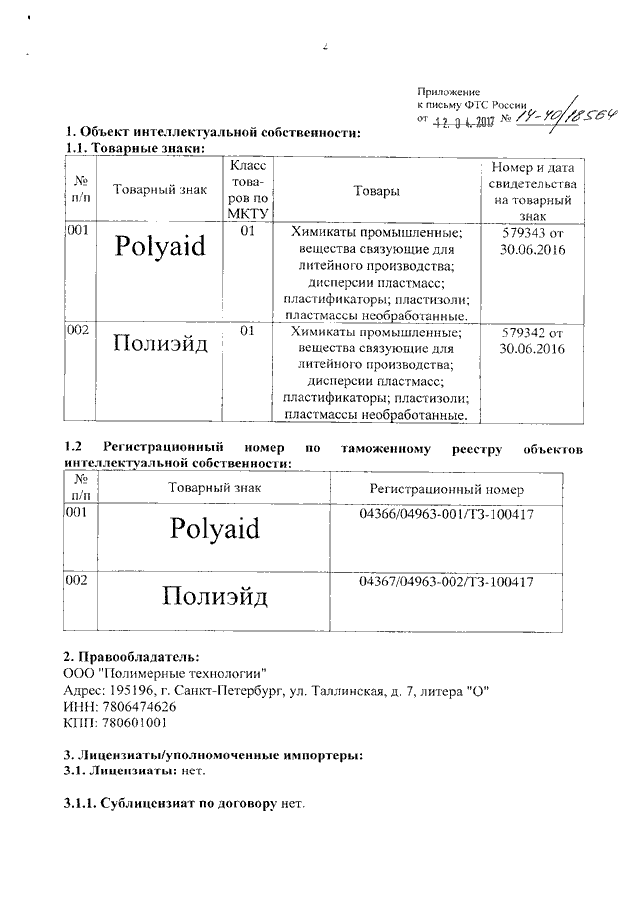 "О ТОВАРНЫХ ЗНАКАХ КОМПАНИИ ООО "ПОЛИМЕРНЫЕ ТЕХНОЛОГИИ"