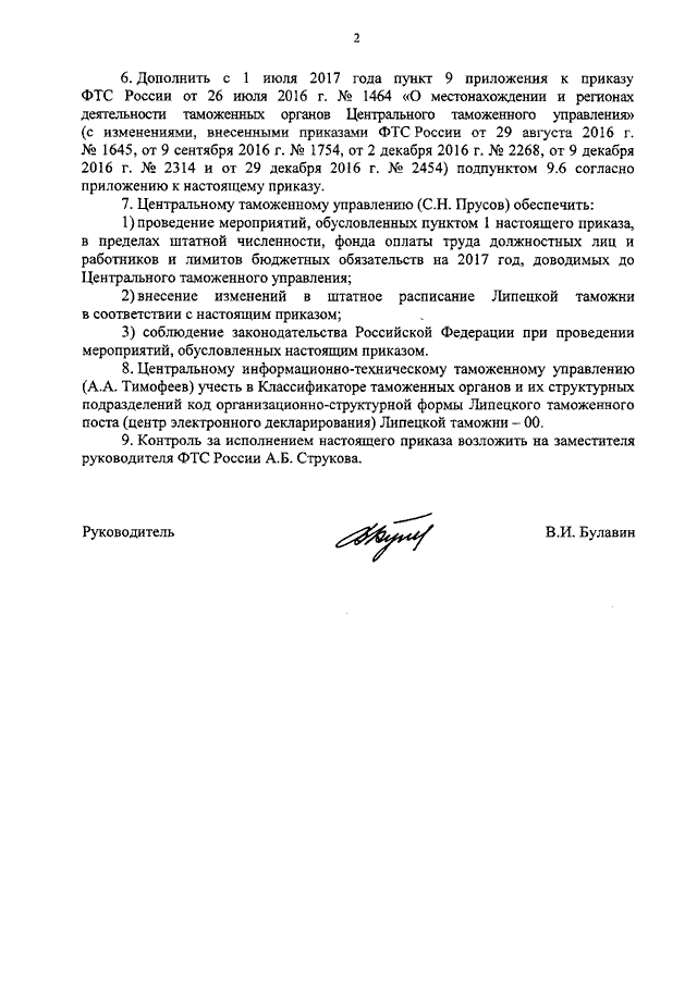 "О СОЗДАНИИ ЛИПЕЦКОГО ТАМОЖЕННОГО ПОСТА (ЦЕНТР ЭЛЕКТРОННОГО ДЕКЛАРИРОВАНИЯ) ЛИПЕЦКОЙ ТАМОЖНИ И О ВНЕСЕНИИ ИЗМЕНЕНИЙ В ПРИЛОЖЕНИЕ К ПРИКАЗУ ФТС РОССИИ ОТ 26 ИЮЛЯ 2016 Г. N 1464"