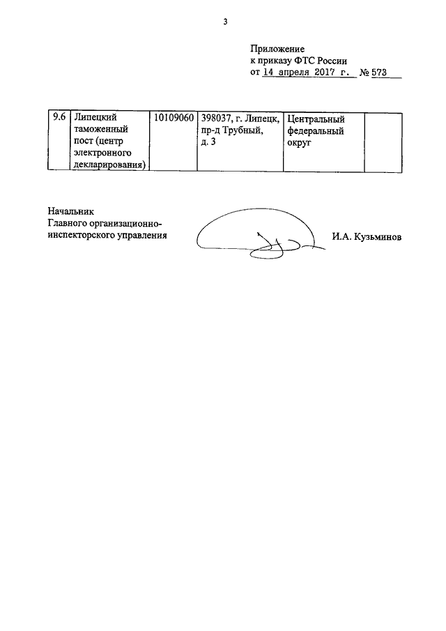 ПРИКАЗ ФТС РФ от 14.04.2017 N 573
