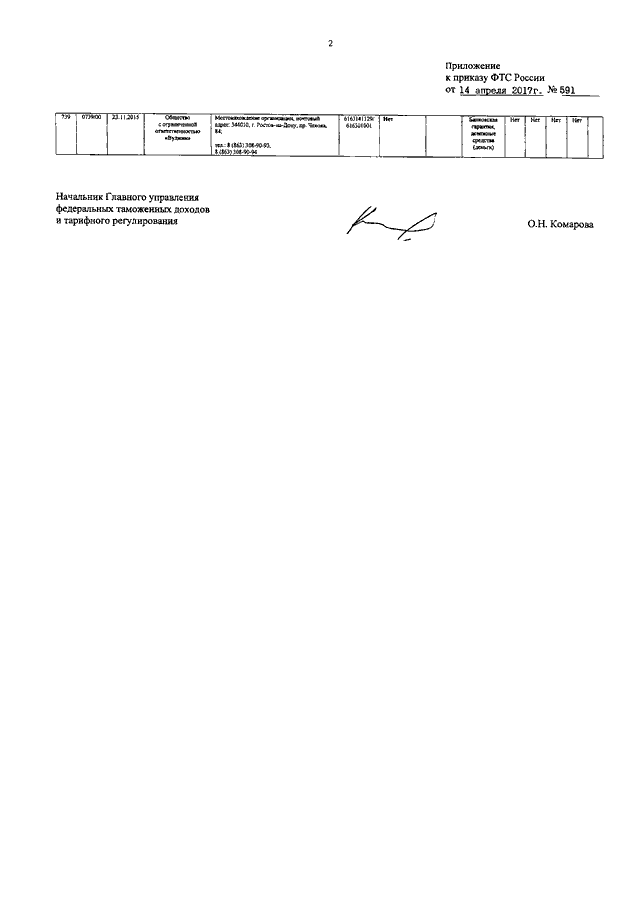 ПРИКАЗ ФТС РФ от 14.04.2017 N 591