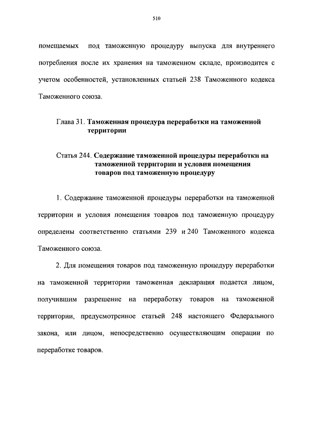 "О ТАМОЖЕННОМ РЕГУЛИРОВАНИИ В РОССИЙСКОЙ ФЕДЕРАЦИИ"