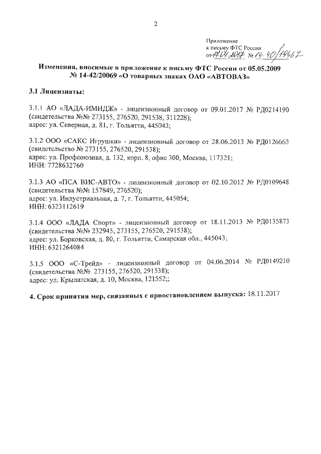ПИСЬМО ФТС РФ от 17.04.2017 N 14-40/19467