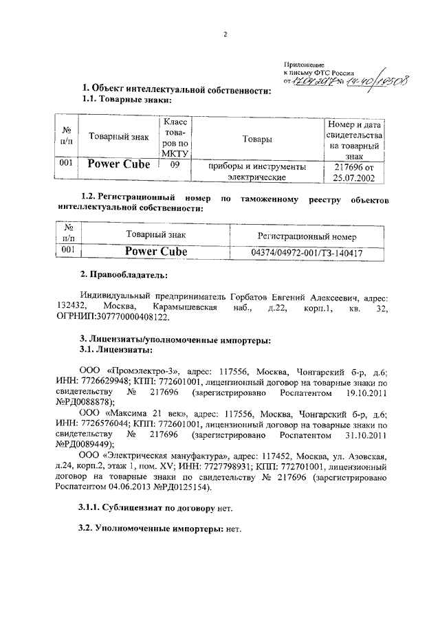 "О ТОВАРНОМ ЗНАКЕ "POWER CUBE"