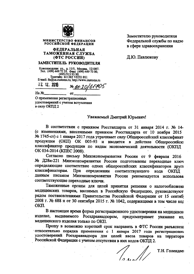 (вместе с ПИСЬМАМИ ФТС РФ от 02.12.2016 N 01-30/61705, Росздравнадзора от 27.12.2016 N 01-63217/16)