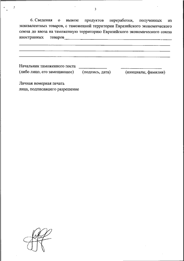 "ОБ УТВЕРЖДЕНИИ ФОРМЫ РАЗРЕШЕНИЯ НА ЗАМЕНУ ИНОСТРАННЫХ ТОВАРОВ ЭКВИВАЛЕНТНЫМИ ТОВАРАМИ (ПРИМЕНЕНИЯ ЭКВИВАЛЕНТНОЙ КОМПЕНСАЦИИ) ПРИ ПРИМЕНЕНИИ ТАМОЖЕННОЙ ПРОЦЕДУРЫ ПЕРЕРАБОТКИ НА ТАМОЖЕННОЙ ТЕРРИТОРИИ, ЕСЛИ В КАЧЕСТВЕ РАЗРЕШЕНИЯ НА ПЕРЕРАБОТКУ ТОВАРОВ ИСПОЛЬЗУЕТСЯ ТАМОЖЕННАЯ ДЕКЛАРАЦИЯ НА ПОМЕЩЕНИЕ ИНОСТРАННЫХ ТОВАРОВ ПОД ТАМОЖЕННУЮ ПРОЦЕДУРУ ПЕРЕРАБОТКИ НА ТАМОЖЕННОЙ ТЕРРИТОРИИ"
