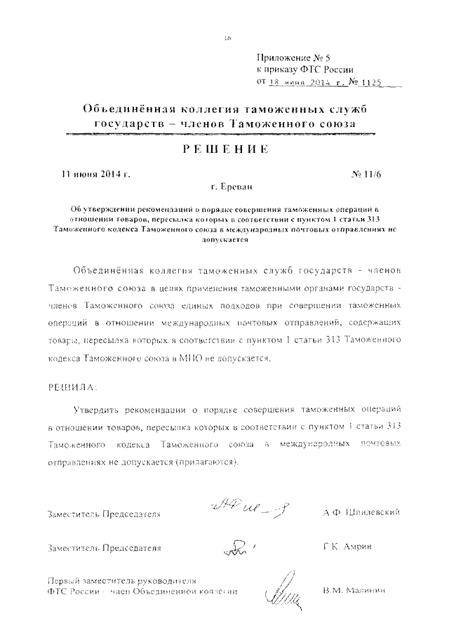 ПРИКАЗ ФТС РФ от 18.06.2014 N 1125