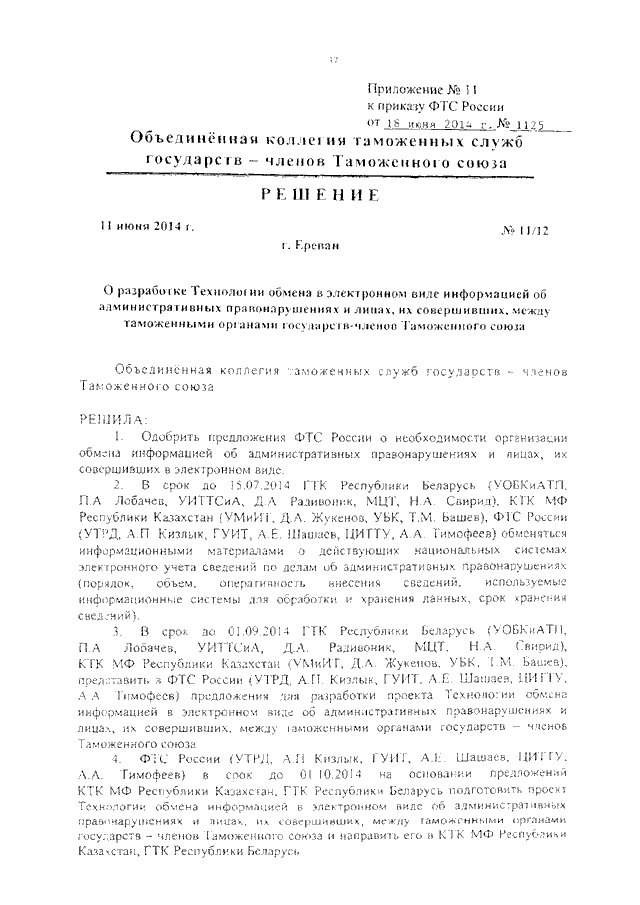 ПРИКАЗ ФТС РФ от 18.06.2014 N 1125